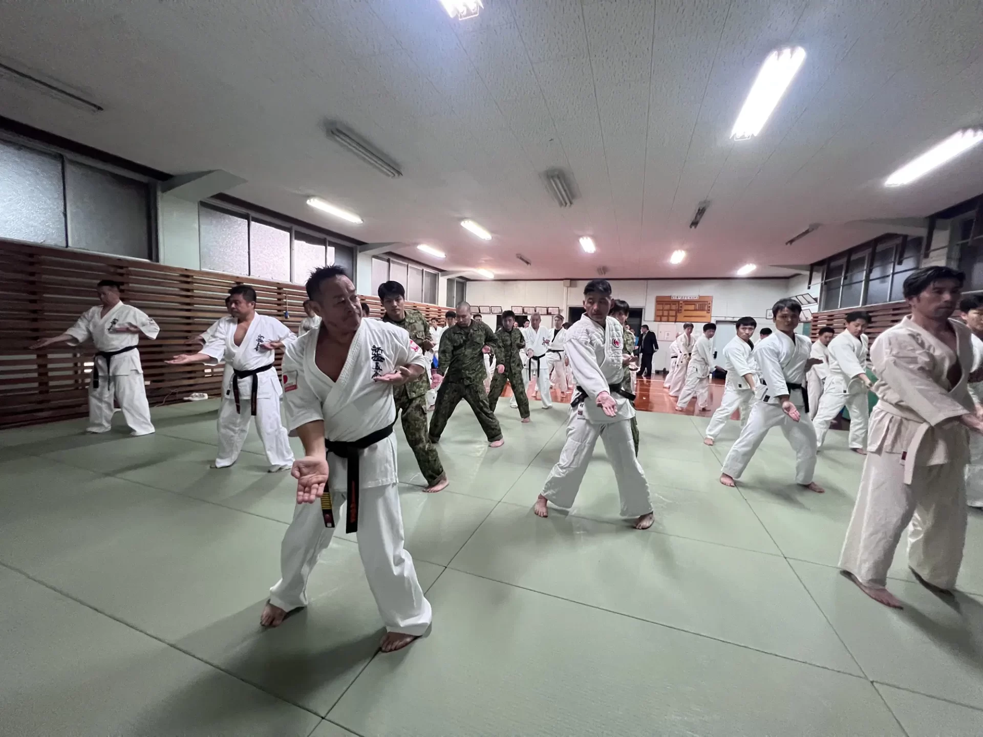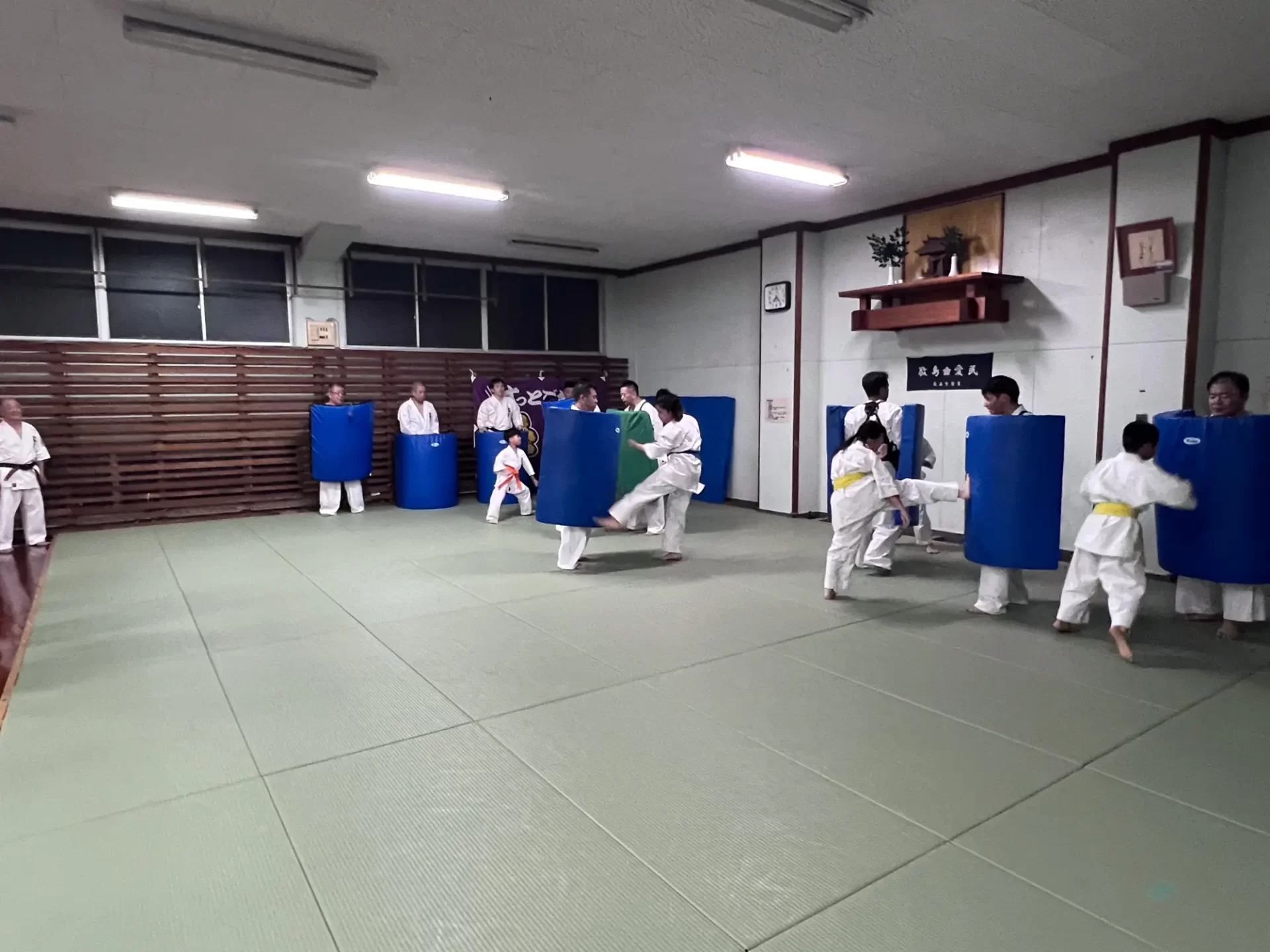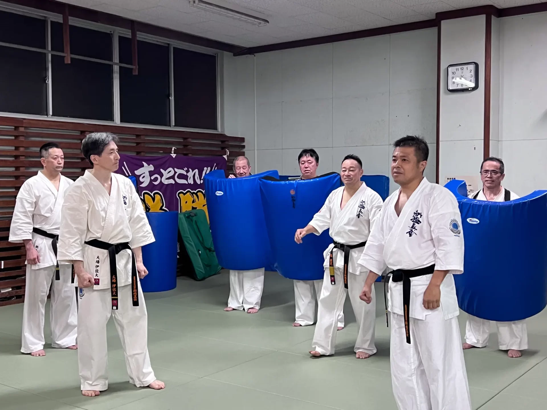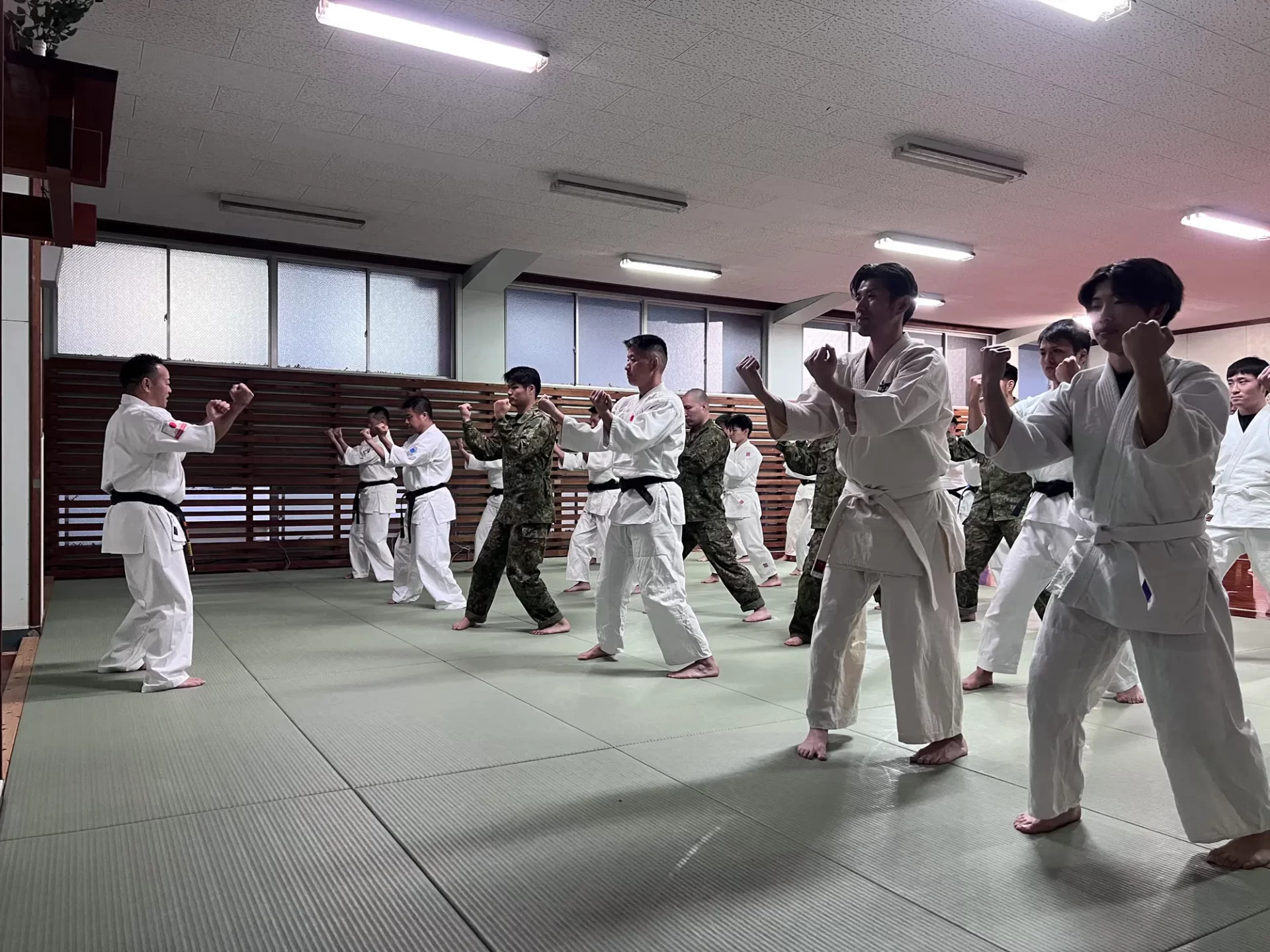 道場生にとって普段触れあうことのない警察署員、陸上自衛隊員、海上保安部 職員との交流が行われるとともに、子供たちの声の大きさや元気良い立ち振る 舞い、シニア道場生の歳を感じさせない動き、そして道場生全体のスタミナに驚きを隠せない職員の顔が印象的でした。