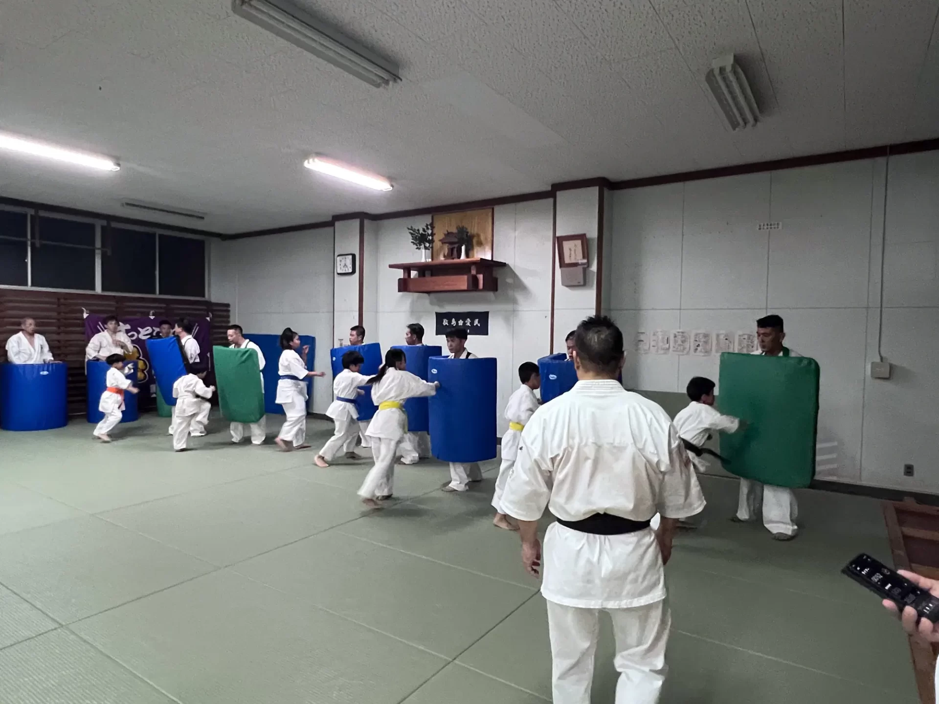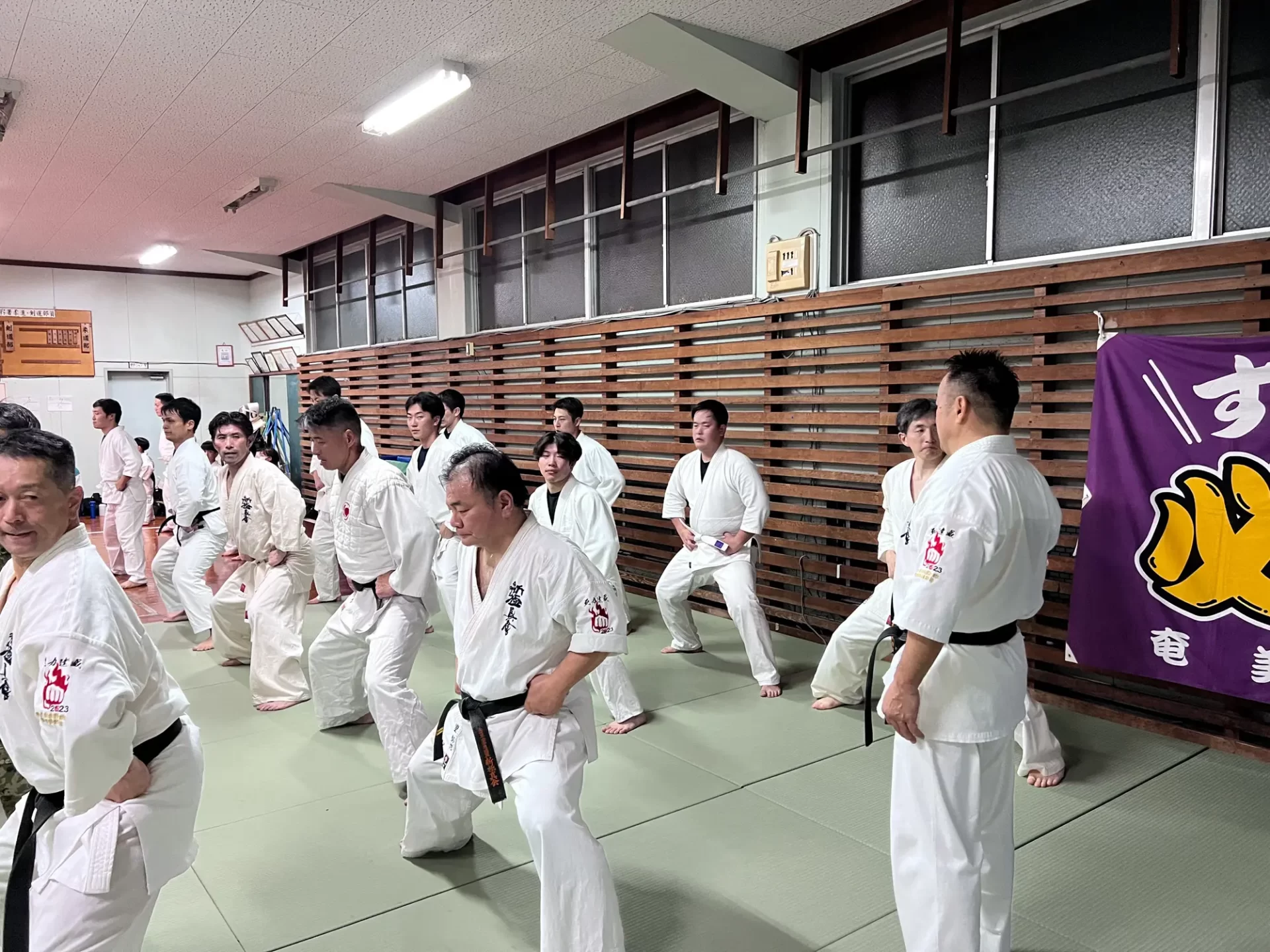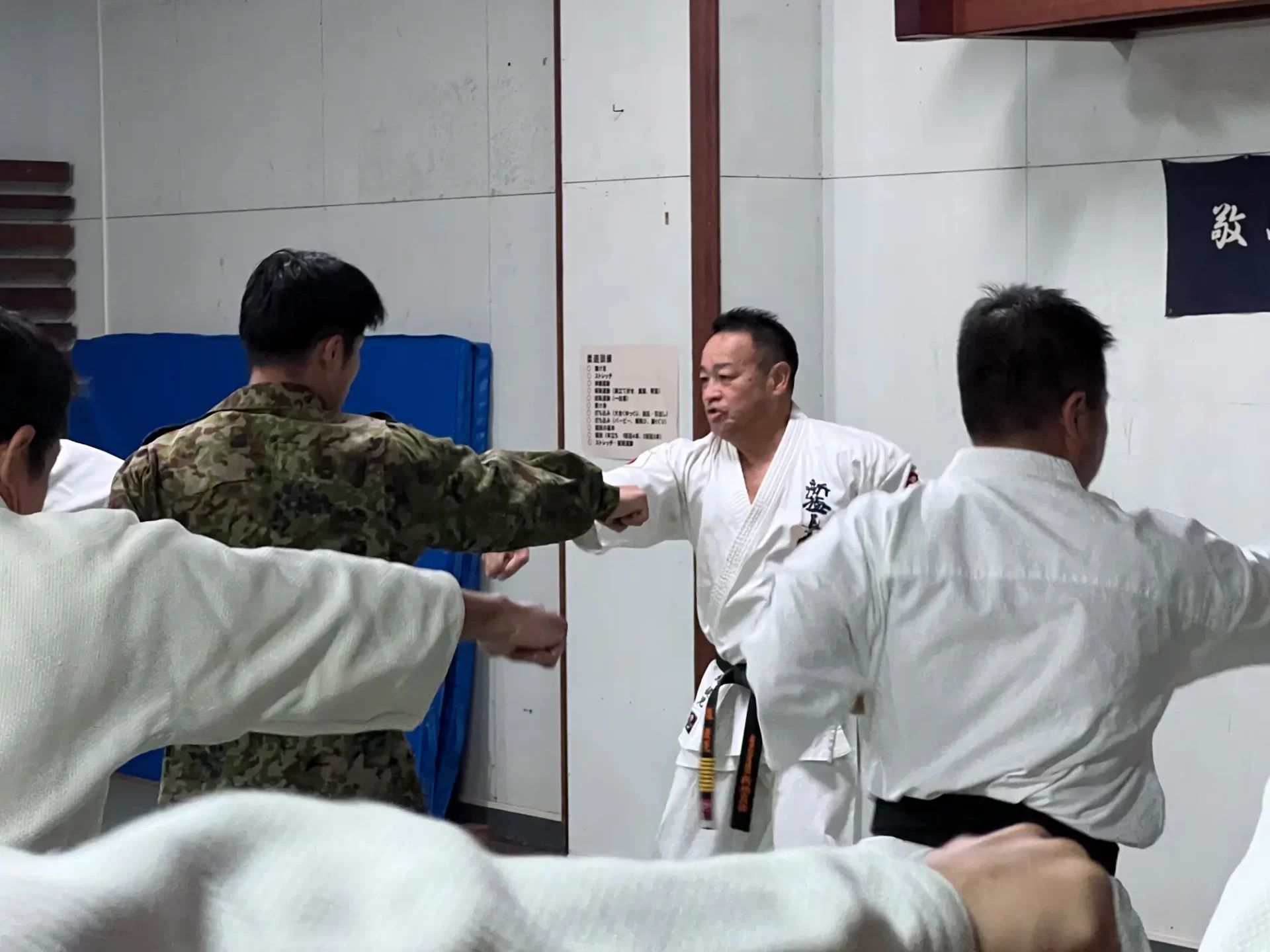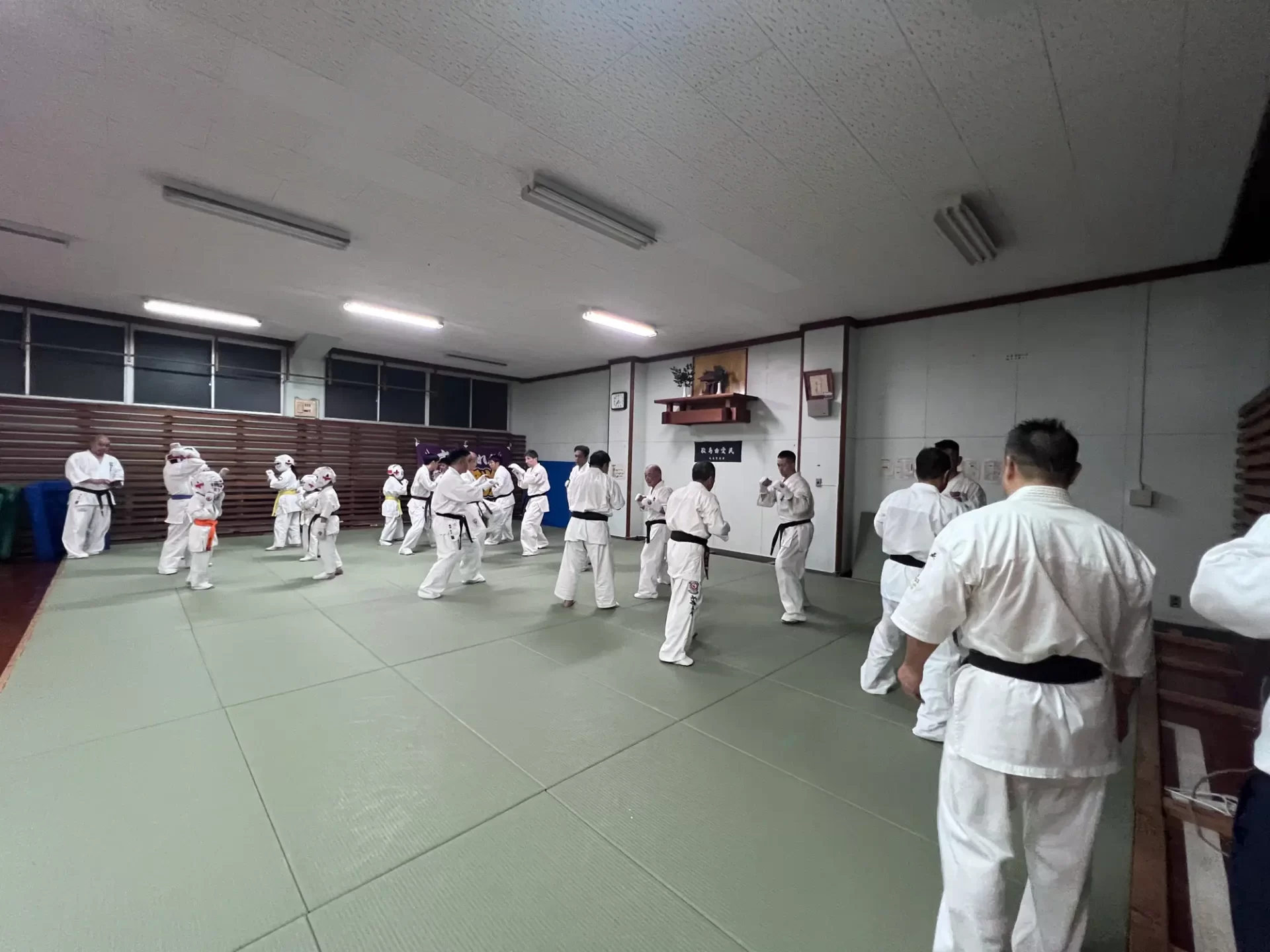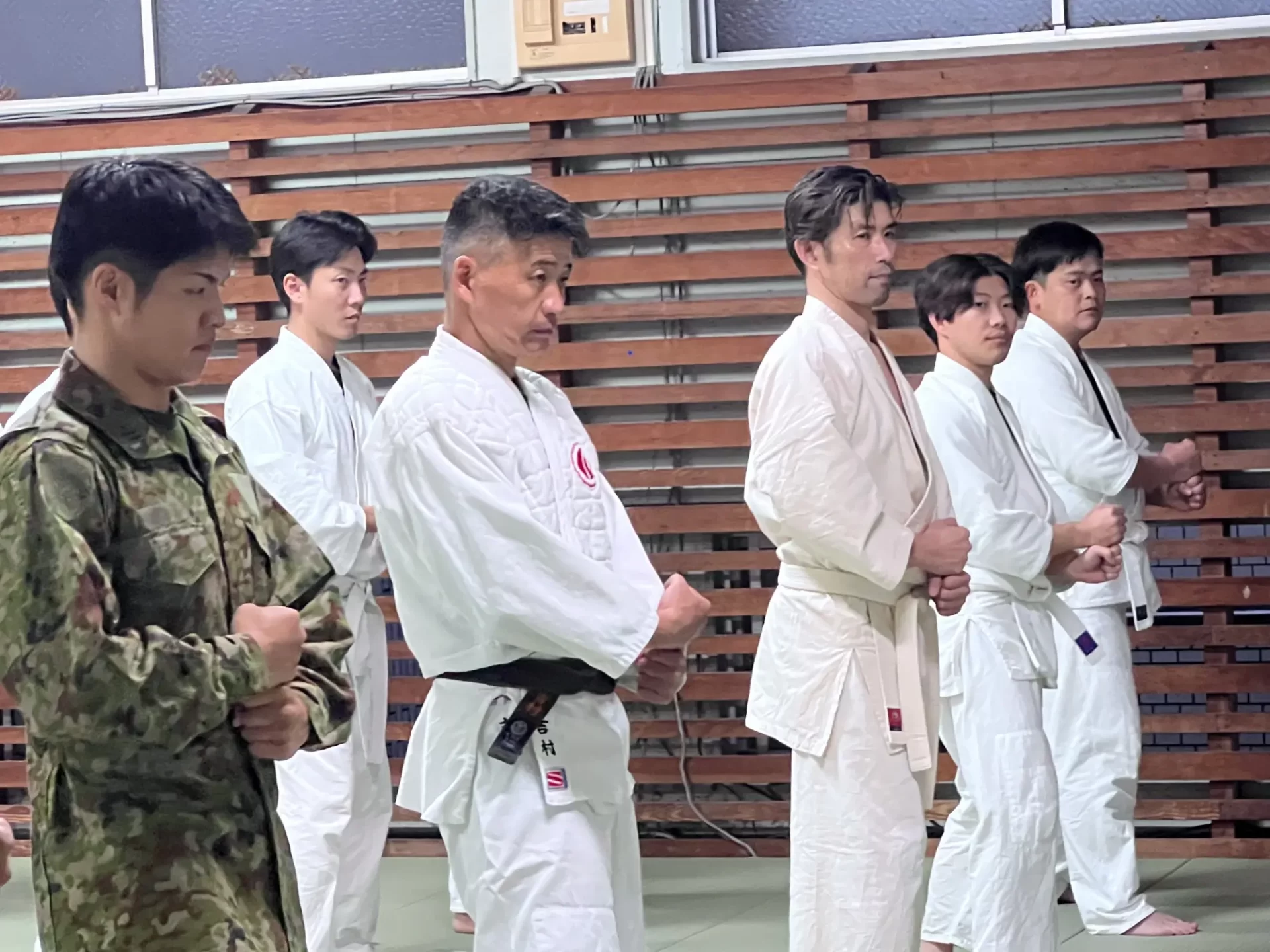 道場生にとって普段触れあうことのない警察署員、陸上自衛隊員、海上保安部 職員との交流が行われるとともに、子供たちの声の大きさや元気良い立ち振る 舞い、シニア道場生の歳を感じさせない動き、そして道場生全体のスタミナに驚きを隠せない職員の顔が印象的でした。