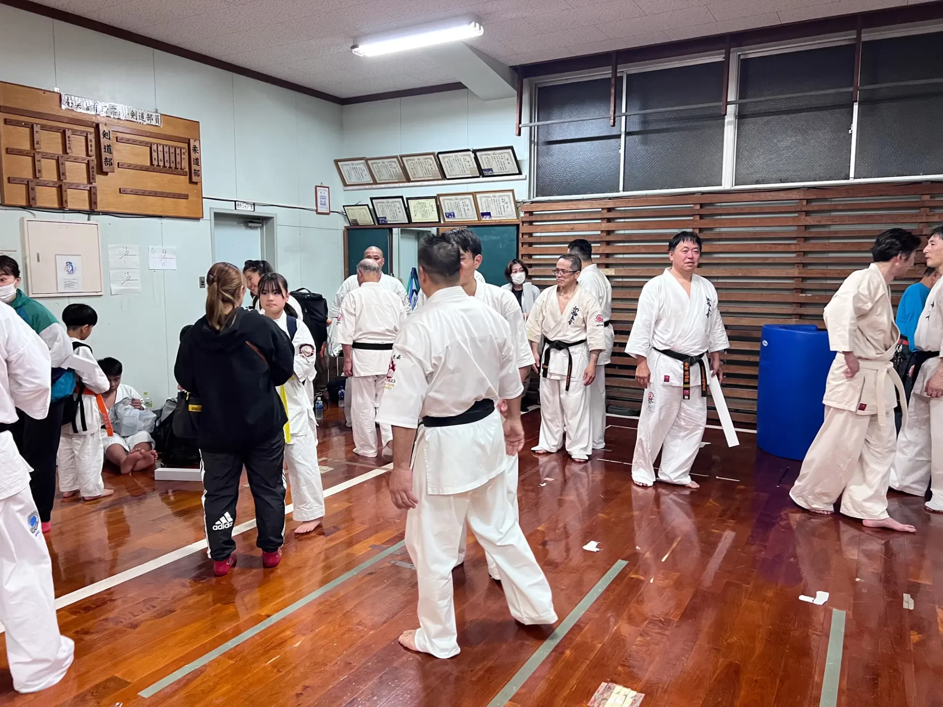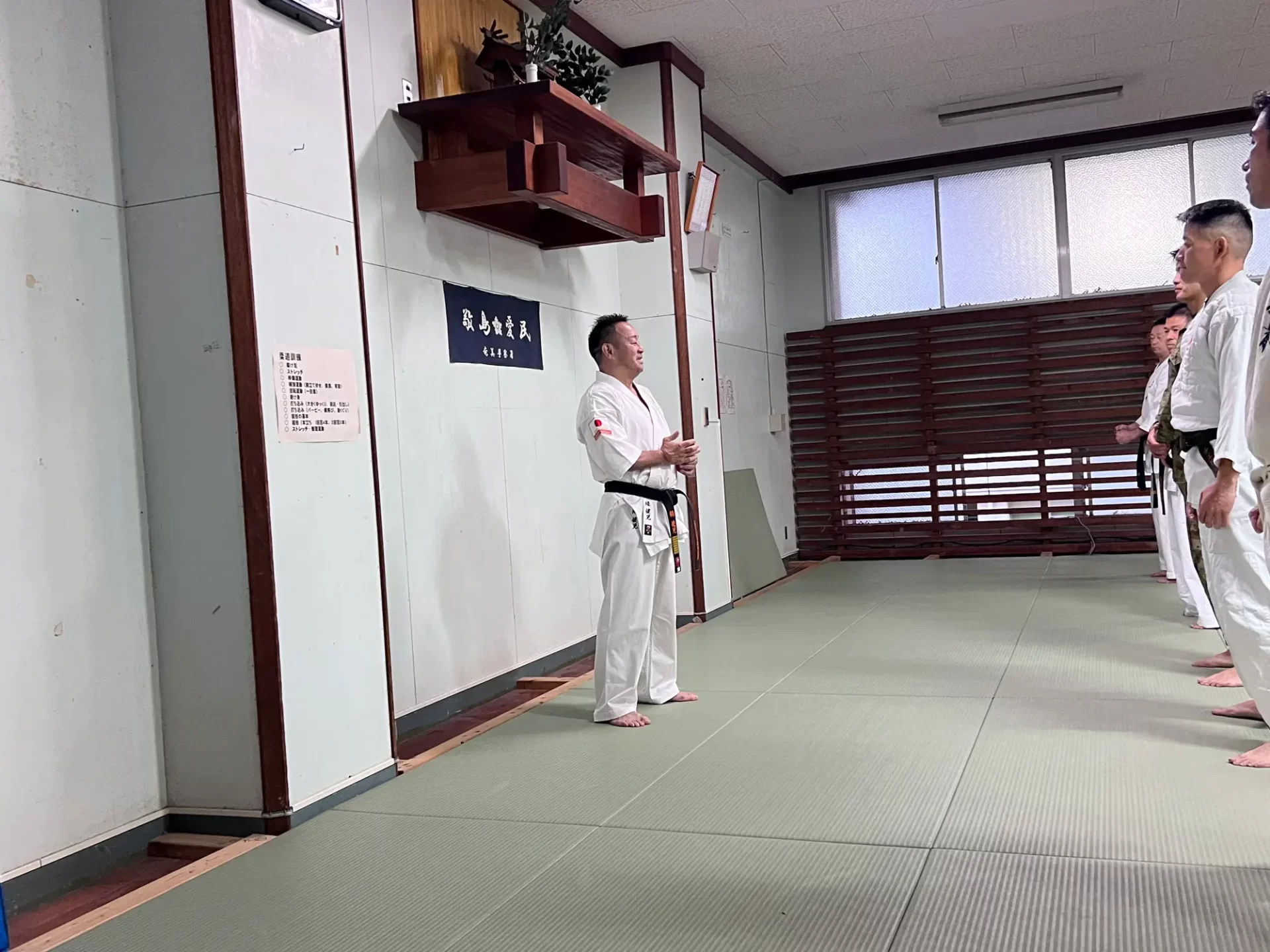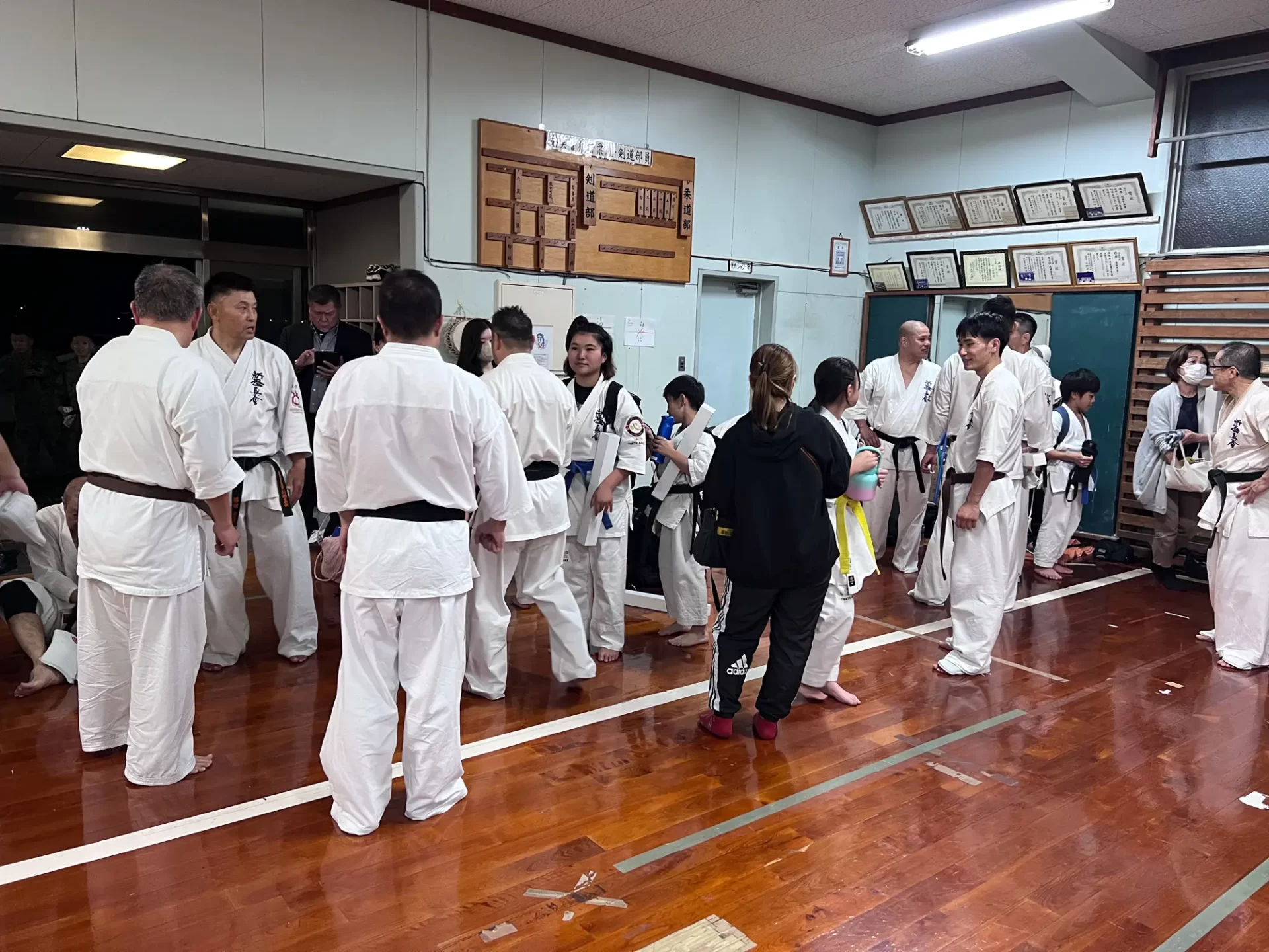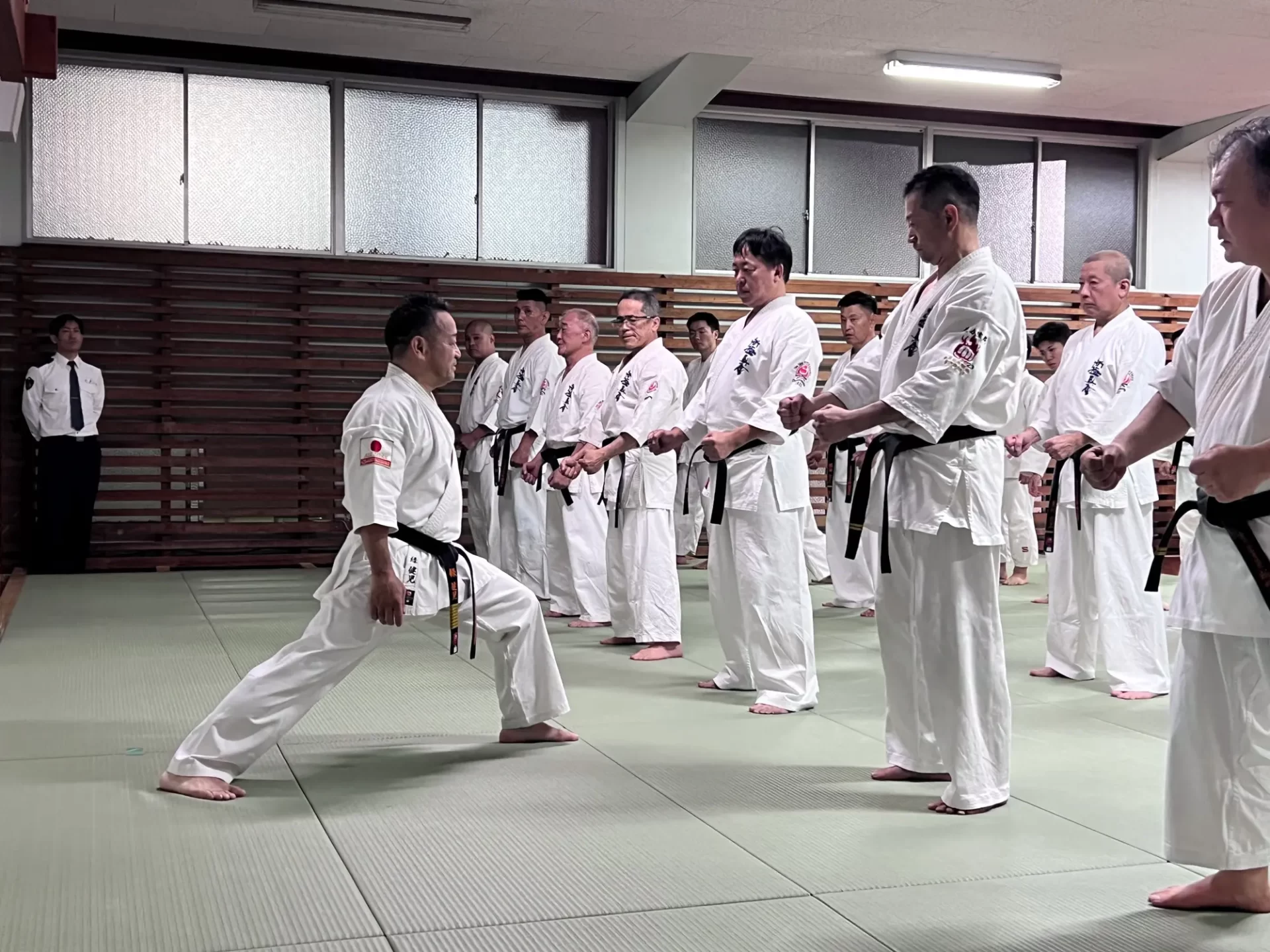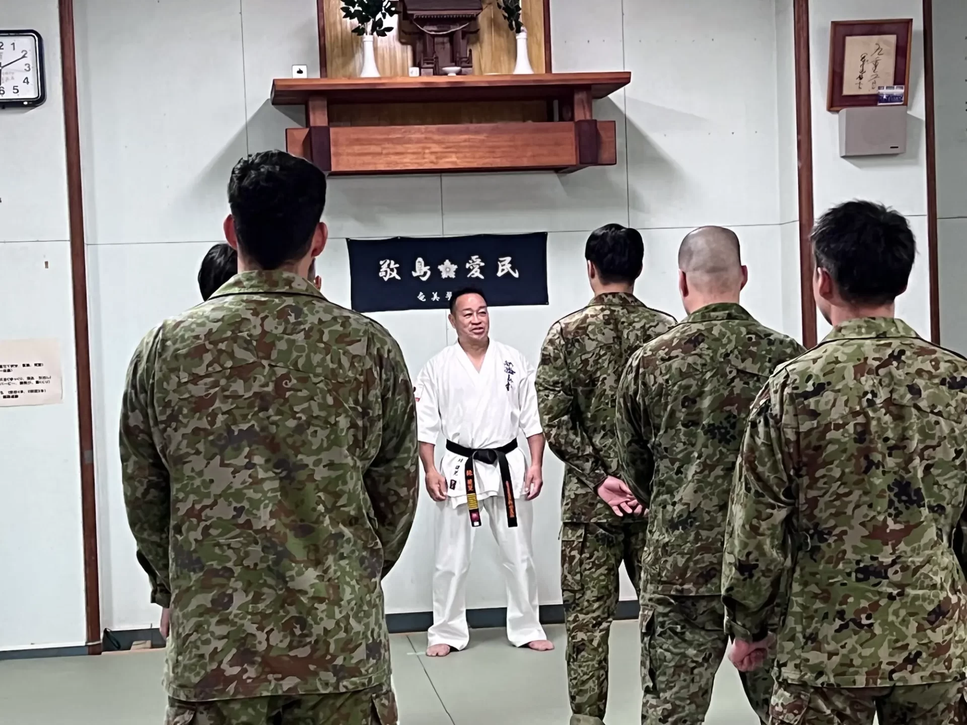 道場生にとって普段触れあうことのない警察署員、陸上自衛隊員、海上保安部 職員との交流が行われるとともに、子供たちの声の大きさや元気良い立ち振る 舞い、シニア道場生の歳を感じさせない動き、そして道場生全体のスタミナに驚きを隠せない職員の顔が印象的でした。