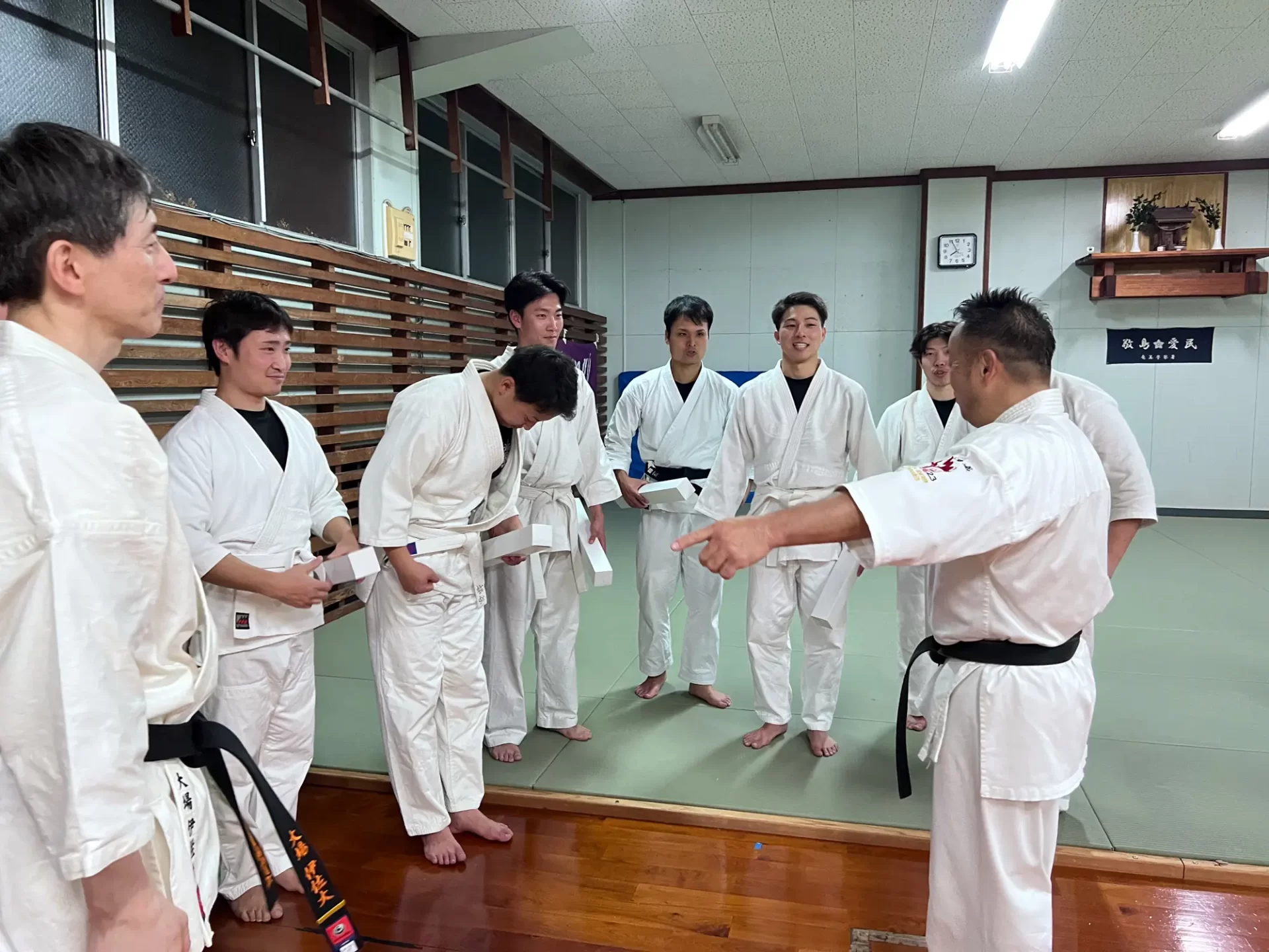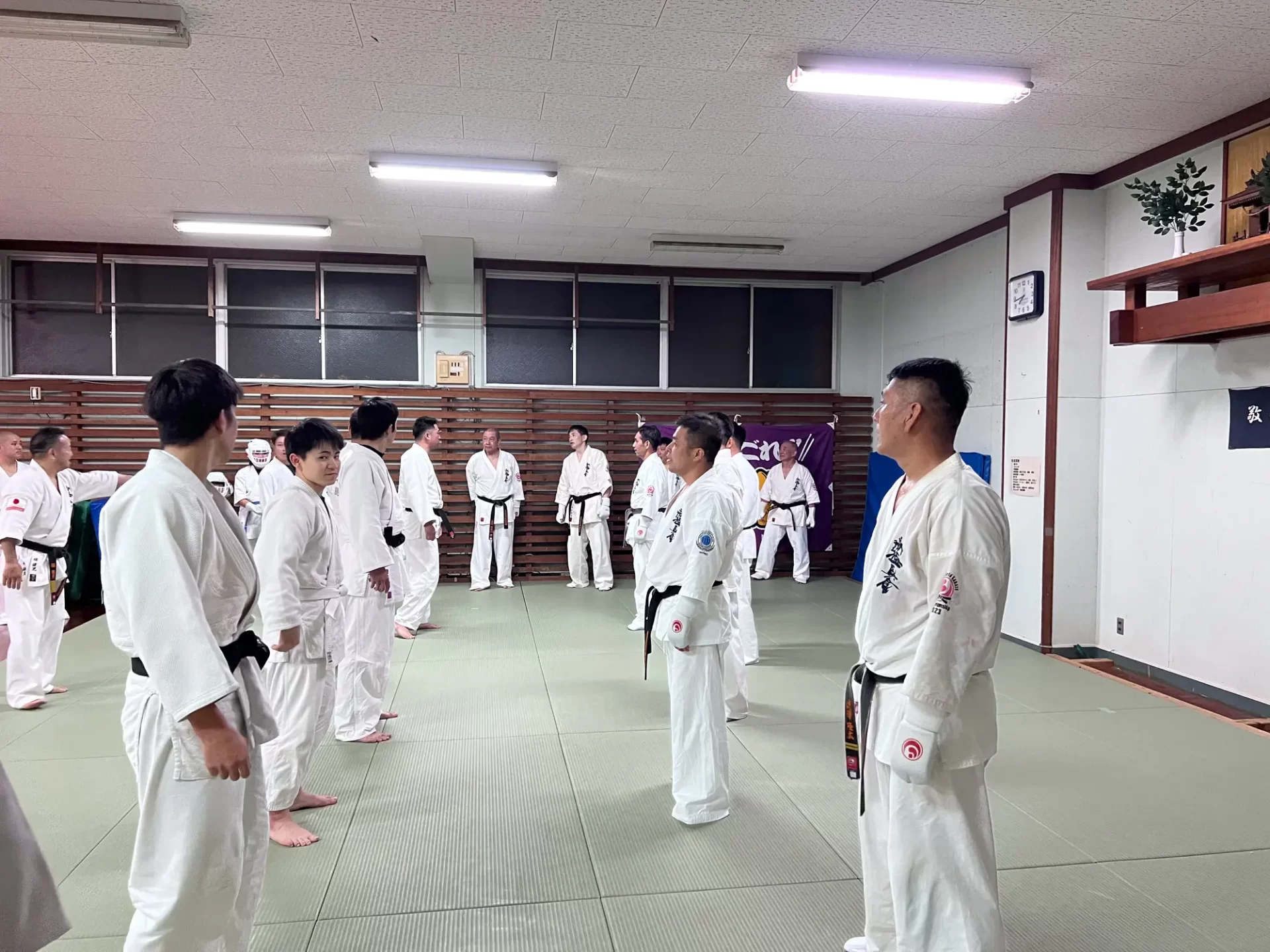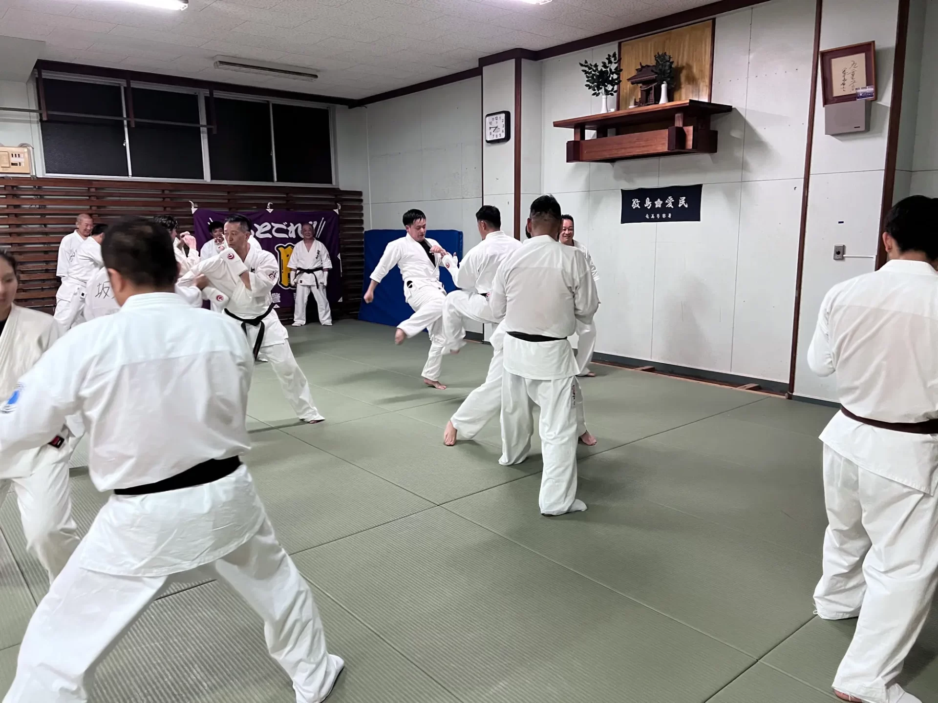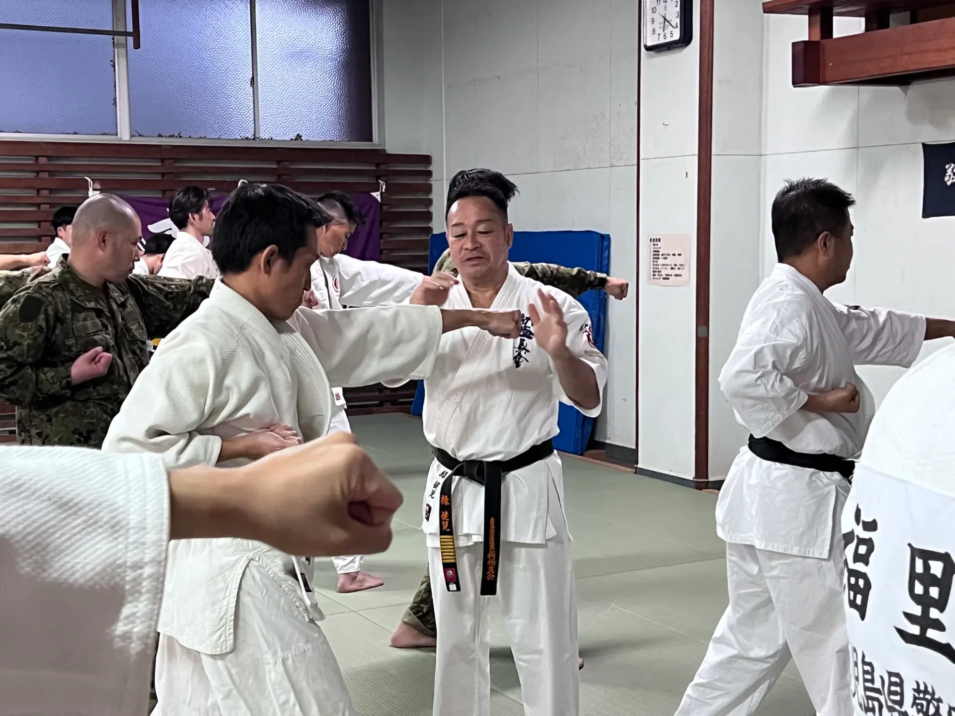 この合同稽古は、奄美大島の安全安心を守る関係機関が一同に介してそれぞ れの機関が保有する逮捕術や制圧技について、 必要最小限度の実力行使による 制圧技を訓練し、関係機関の連携強化を図ることと、 緑健児代表のふるさとであ るこの奄美の地で根付いている新極真カラテをそれぞれの職員が習い、触れる ことで、職員の心身及び体力の強化を図り、 島民や島を訪れる方々への平穏な生 活に寄与することを目的として行われました。