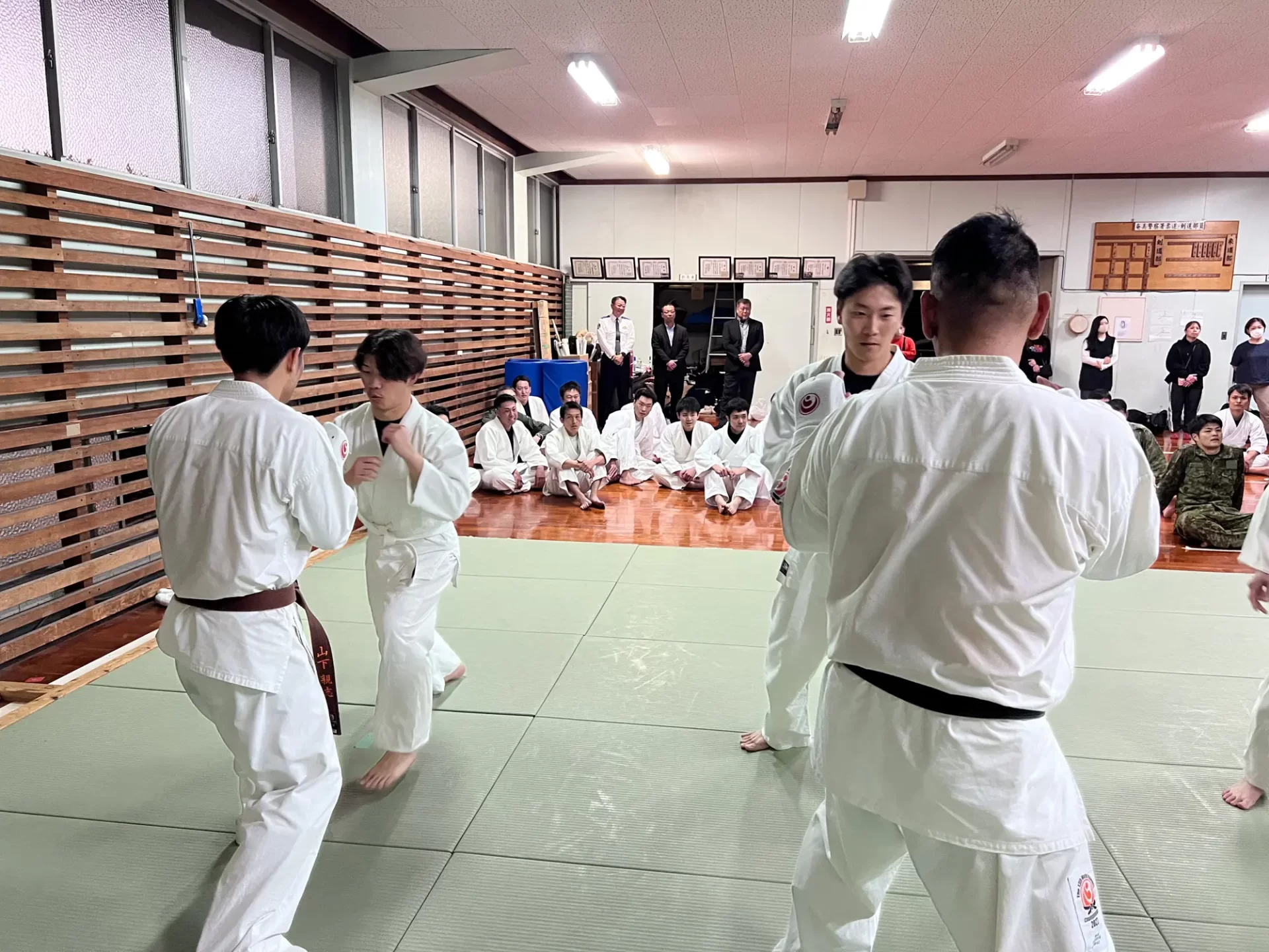 その後、組手の披露も行われ、 同様に3機関の職員が奄美支部道場生と組手を する機会が設けられました。