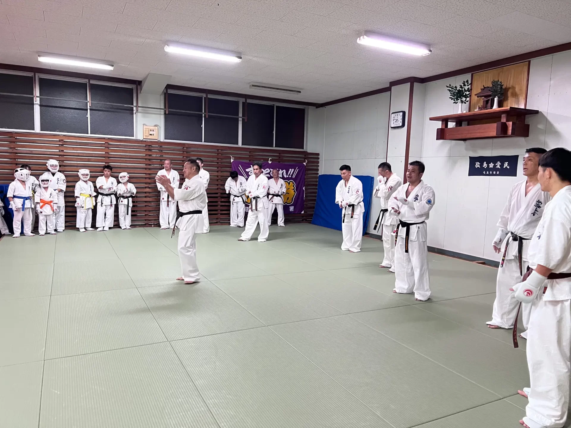 2部では、 奄美支部の道場生も参加し、 緑代表による基本稽古、 移動稽古、 型 の指導が順に行われました。