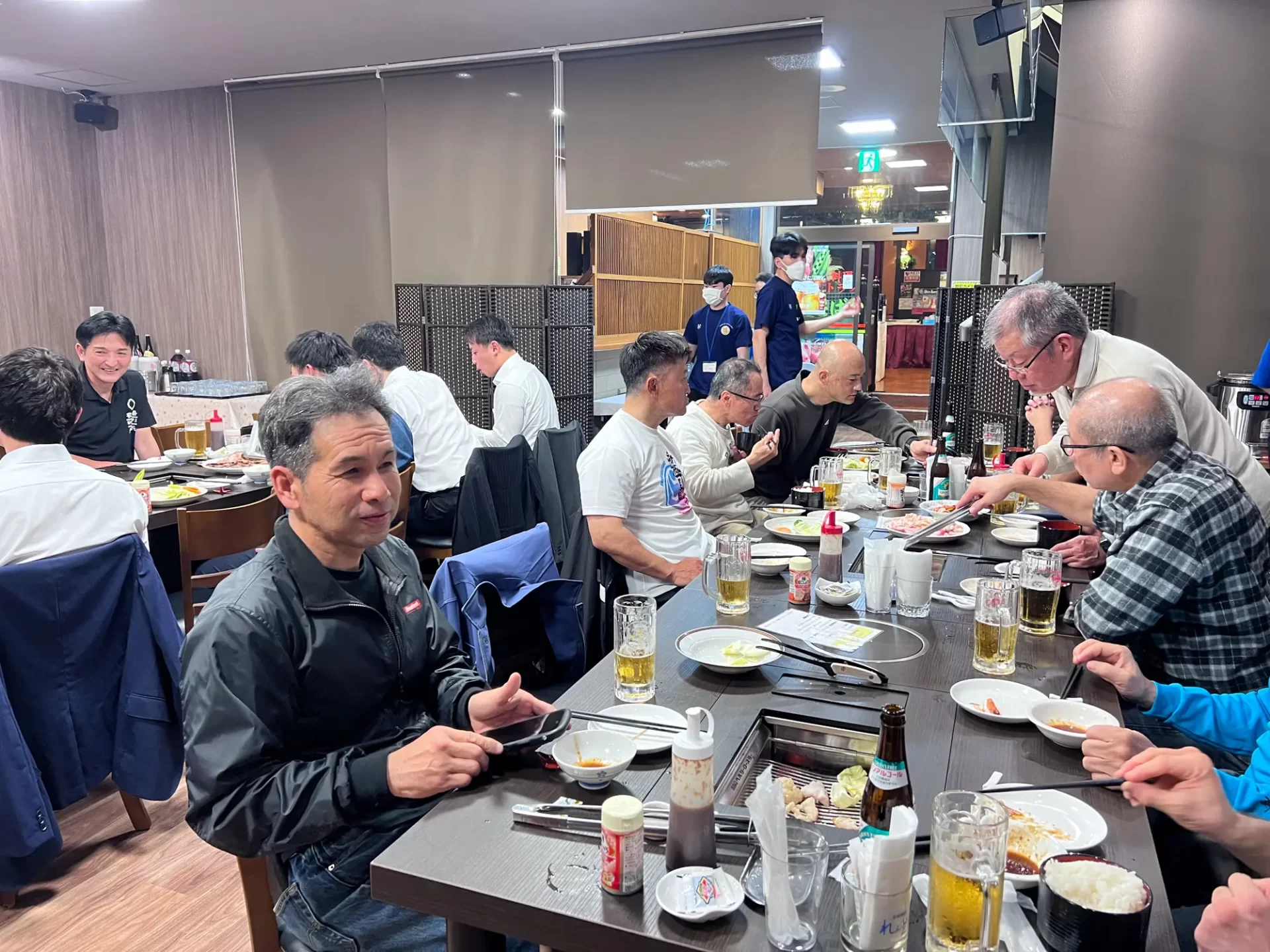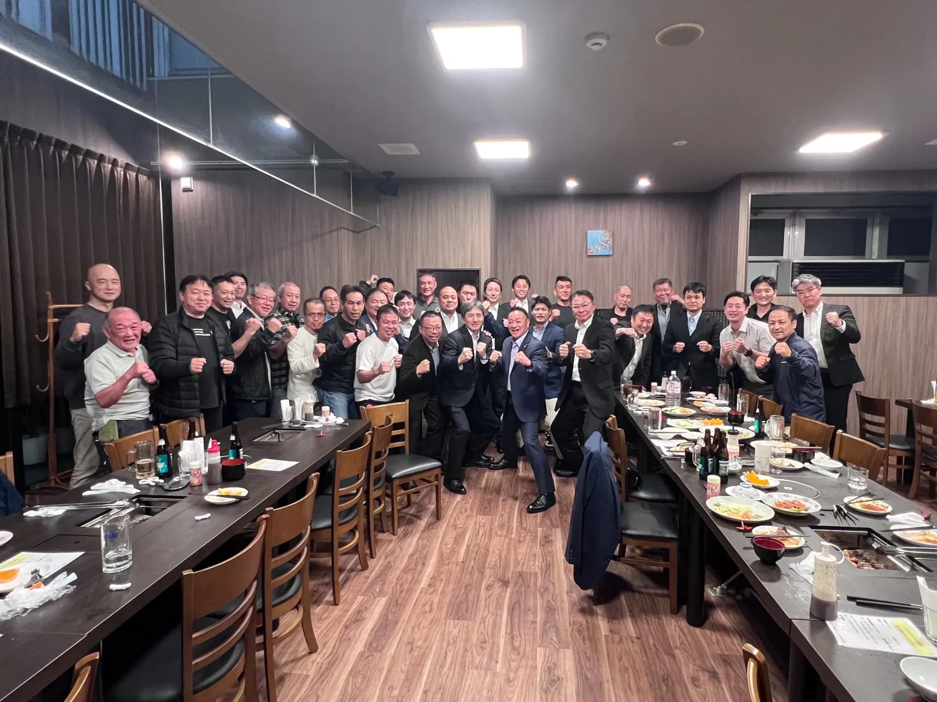 最後は緑代表号令による正拳突きで3時間の合同稽古は締められましたが、 稽古後参加者からは「新極真カラテをしたかったので参加できてよかった。 また やってみたい。」、「久々にこんなに体を動かし、 気持ちがすっきりした。」、 「シニ アの人がとても若々しく感じた。 健康作りに良さそうだ。」 などの様々な感想が あり、充実感あふれる爽やかな笑顔の多さに昨年以上の盛り上がりを感じて幕 を閉じた合同稽古になりました。